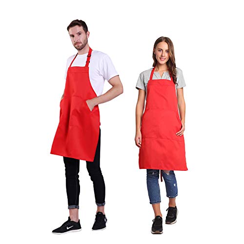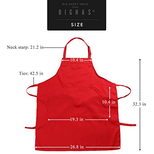 BIGHAS Grembiule regolabile con tasca extra lungo cravatta per donne, uomini, cucina, casa, cucina, in cotone/poliestere, Red, 27W×32L