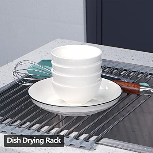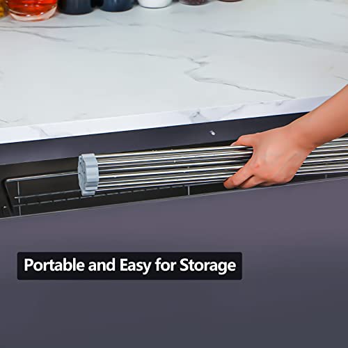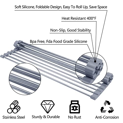 Bighause Stendibiancheria arrotolabile: scolapiatti pieghevole sopra il lavello scolapiatti da cucina in acciaio inox portatile multiuso da cucina grigio 43 x 30 cm