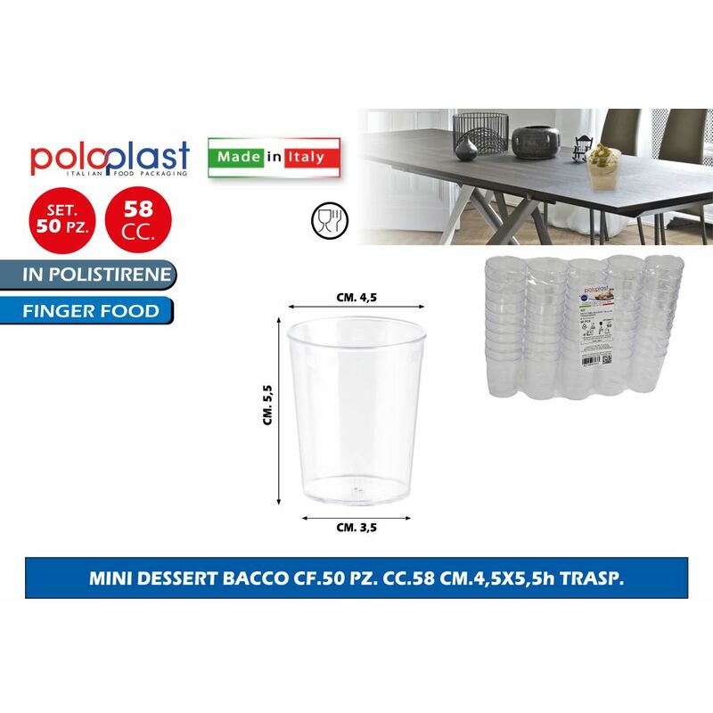 MINIDESSERT BACCO CF.50 PZ. CC.58 CM.4,5X5,5h TRASPARENTE
