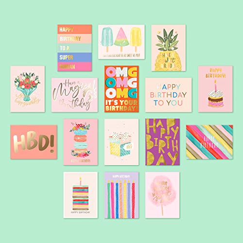S&O - 50 biglietti di auguri di compleanno con buste e biglietti di auguri di compleanno, assortimento di biglietti di auguri assortiti con buste, set di biglietti di auguri assortiti