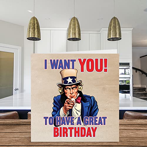 Biglietti di auguri divertenti per uomini e donne - Uncle Sam USA Army Poster - Biglietto di auguri per mamma, papà, fratello, sorella, nonna, bambinaia, 145 mmx145 mm, 30° 40° 50° 60° 70° 80° Bday