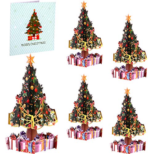 Biglietti di Auguri di Natale Cartoline di Natale Pop-Up 3D Carte dell'Albero di Natale con Buste per Regali di Festa Natale (5)