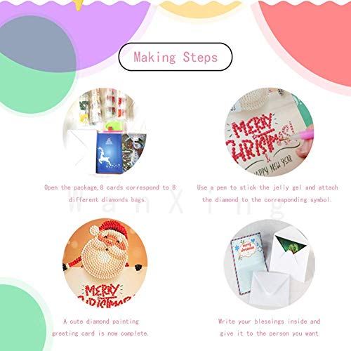Design fai da te con diamanti di Natale: il biglietto di auguri ha una speciale copertura a forma di diamante, tra cui 8 diversi modelli, come Babbo Natale, pupazzo di neve, renne, calze, jingle bell e candele.