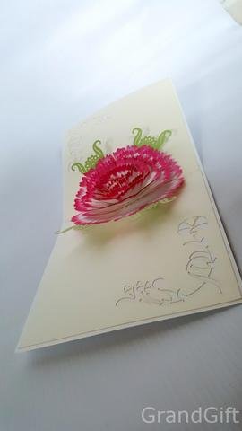 Biglietti d'auguri pop-up 3D per compleanno, motivo: fiori di garofano, rosa, fatti a mano, Kirigami & Origami