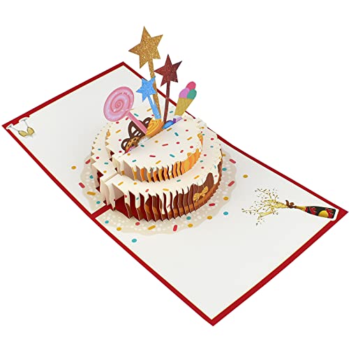 Biglietti di auguri 3D, biglietti di auguri pop-up creativi e commemorativi, biglietti commemorativi fatti a mano, adattati ideali per amanti, anziani, bambini e amici (torta a stella rossa)