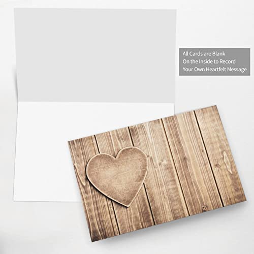 Biglietti d'auguri vuoti con cuore in legno con buste verde scuro — compleanno, laurea, matrimonio, simpatia, pensiero di te, grazie