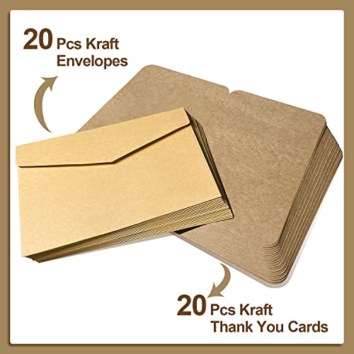 20 biglietti di carta kraft con buste, colore marrone naturale, biglietti pieghevoli, per regalo, biglietti di auguri, invito