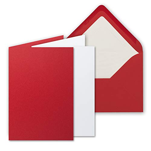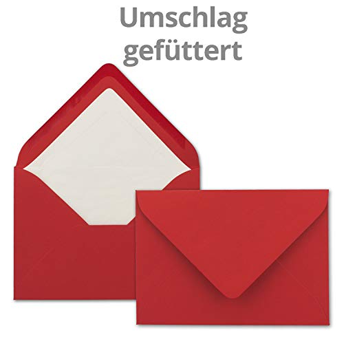 Set di 150 biglietti di grandi dimensioni, colore rosso rosa (rosso), opachi, con 150 biglietti pieghevoli, fogli bianchi e 150 buste foderate, DIN B6, 12 x 17 cm, 120 x 170 mm