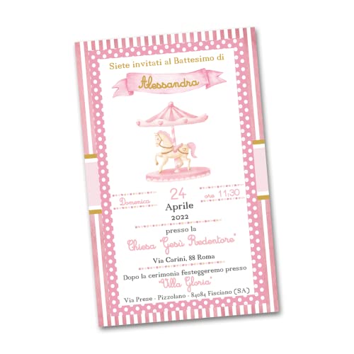 Biglietti Inviti per Festa BATTESIMO personalizzabili Grafica a Scelta Bimbo/Bimba, biglietti di Invito per Battesimo stampato su CARTONCINO di 300gr/mq 95x150mm (Carosello Girl)