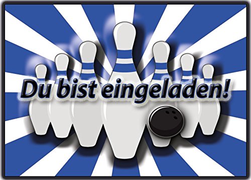 Biglietti di invito di compleanno dei bambini Bowling Bambino party con testo - 8 pezzi blu