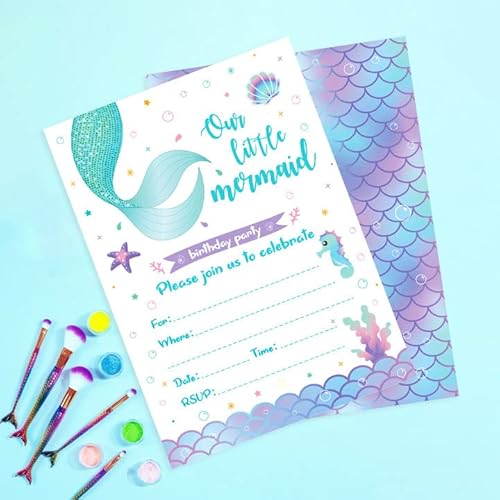 【Prime Day Regalo Biglietto D'invito Sirena】:Inviti compleanno Include 10 biglietti d'invito Sirena ragazza e 10 buste bianche abbinate, adatte per inviti a feste per ragazzi e ragazze.