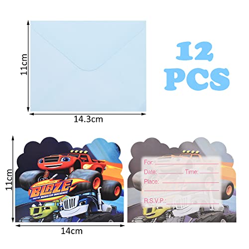 Biglietti d'invito Monster Truck simyron 12 pezzi Set di biglietti d'invito Blaze e le macchine dei mostri Inviti per bambini Ragazzi Ragazze Festeggiamenti per feste a tema Monster Truck