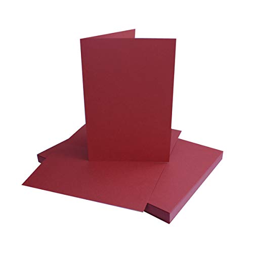Set di biglietti pieghevoli, formato DIN B6, 12 x 17 cm, interno in seta colorata, con adesivo umido 75 Karten-Sets 14 rosso scuro