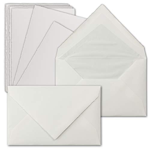 Biglietti vintage con buste Zerkall, in vera carta fabbricata a mano, da circa 11,3 x 17,5 cm (formato B6), senza pieghe 35 Sets bianco naturale