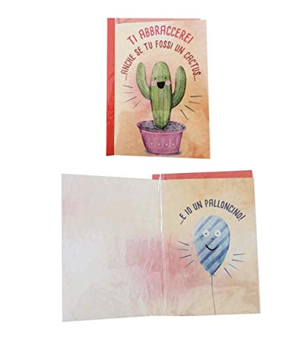 Biglietto Auguri con Busta Amore Cactus & Palloncino 16,5x11,5cm