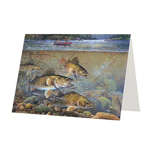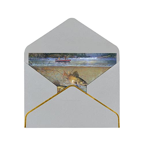 Biglietto di auguri in carta perlata color grigio chiaro per pescatori di lago con bordo dorato applicabile per: utilizzare come biglietto di Natale, biglietto di compleanno per bambini, biglietto di San Valentino, anniversario di matrimonio e biglietto di invito per feste. Un semplice augurio sincero che farà sentire il destinatario caldo e stimolante, il biglietto di auguri perfetto per quella persona speciale nella tua vita