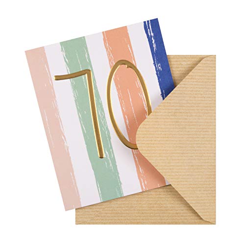 Biglietto di auguri per 70° compleanno da The Hallmark Studio, con numeri in lamina d'oro in rilievo.