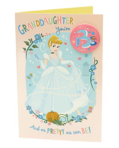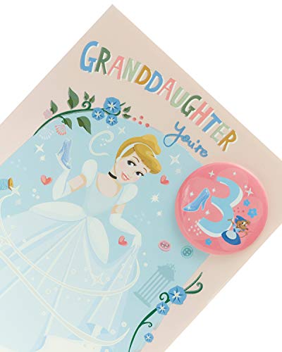 Biglietto di auguri per il 3° compleanno per nipote, biglietto di compleanno per bambina di 3 anni, motivo Disney Cenerentola, badge incluso