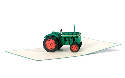 Regalo speciale: biglietto di compleanno originale, con trattore pop-up sulle pagine interne. Con questo biglietto 3D verde e rosso non solo regalerete auguri speciali agli agricoltori o giardinieri, ma anche a tutti i bambini, in particolare ai ragazzi. Donate a qualcuno una gioia speciale con questo biglietto di auguri.