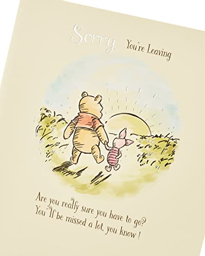 Biglietto di auguri Disney Sorry You're Leaving Card - Biglietto di auguri Disney con scritta in lingua inglese "Sorry You're Leaving", biglietto di addio e buona fortuna di Winnie the Pooh