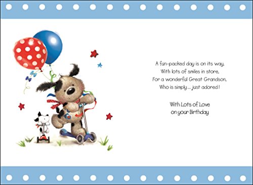 Biglietto di auguri (JJ3026) per il compleanno del nipote - Fudge on Scooter - gamma Fudge & Friends - goffratura, lamina e finitura flitter