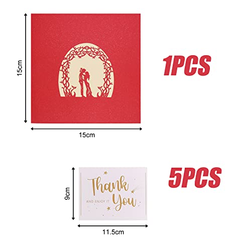 1 biglietto d'auguri per matrimonio 3D e 5 biglietti di ringraziamento, biglietti d'auguri per coppie 3D, biglietti d'auguri romantici pop-up, anniversario, Natale, San Valentino, matrimonio
