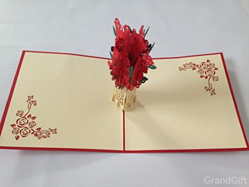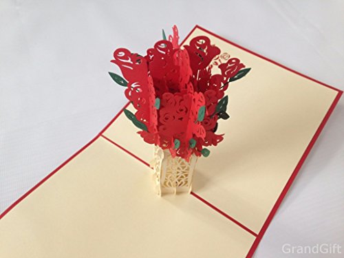Biglietto di auguri 3D con mazzo di rose pop-up, realizzato a mano secondo le tecniche kirigami e origami, biglietto per compleanno