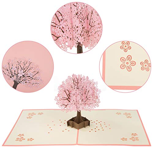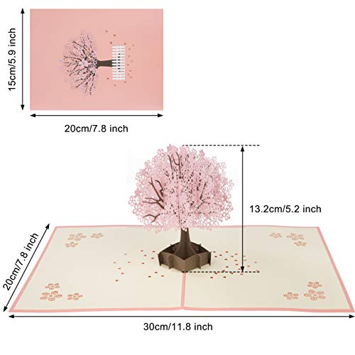 BIGLIETTI DI AUGURI POP UP 3D: apri questo biglietto, il sorprendente albero di fiori di ciliegio apparirà sorprendentemente pop-up, circondato da abbellimenti di petali di fiori di ciliegio attorno alla base dell'albero, l'elemento romantico e dolce rende questo biglietto di auguri più attraente.