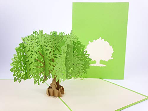 Biglietto di auguri pop-up 3D con grande albero di quercia, fatto a mano, per compleanno, matrimonio,