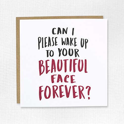 Biglietto di auguri con scritta "Can I Please Wake Up To Your Beautiful Face Forever", per anniversario o San Valentino, imbarazzante, imbarazzante, Amore