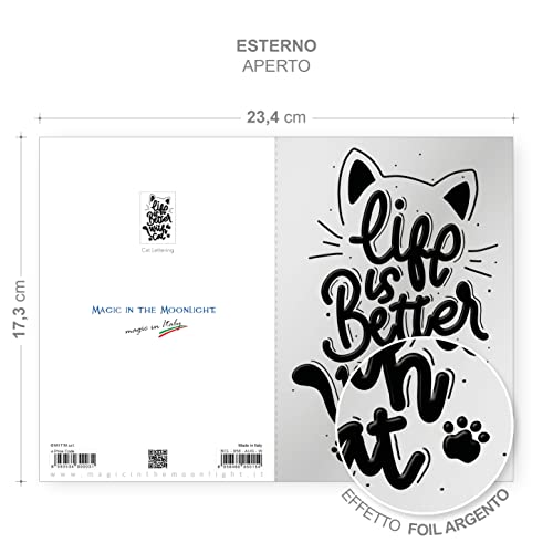 Biglietto COMPLEANNO auguri | busta regalo abbinata | dimensioni 18 x 12 | fatto a mano e Made in Italy GATTO LETTERING