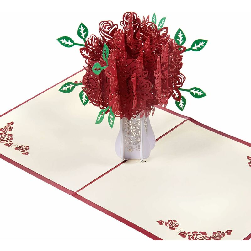 Realizzato in carta kraft resistente e di qualità e stampa ecocompatibile Apri delicatamente questo grazioso biglietto per rivelare una composizione floreale rossa tridimensionale con delicate foglie verdi in un bellissimo vaso bianco dal taglio intricato. Decorazioni rosse tagliate al laser adornano i bordi esterni del cartoncino. Questo biglietto di auguri è vuoto all'interno per consentirti di scrivere il messaggio del tuo cuore a tua madre, sorella, figlia, amante, amica, moglie, altro significativo, amico, per ogni occasione speciale. Il nostro biglietto pop-up viene fornito con una busta. Perfetto per regali di auguri di compleanno, regali di San Valentino, auguri di compleanno, carte di nozze, inviti a feste, auguri di ringraziamento e qualsiasi altro giorno speciale. L'elegante e imponente bouquet di rose è perfetto per San Valentino, compleanni, festa della mamma o ogni volta che vuoi mostrare a qualcuno di speciale nella tua vita quanto lo ami. Materiale: carta Dimensioni