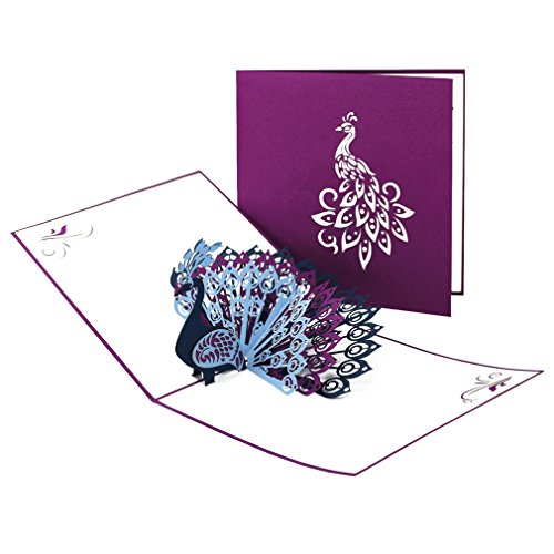 Biglietto pop-up 3D "Pavone - Piume di pavone" - Elegante biglietto di compleanno con pavone e invito in viola - Biglietto di auguri e invito per matrimonio e compleanno con busta