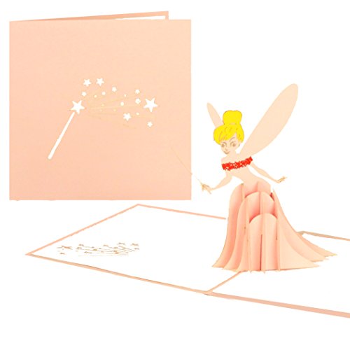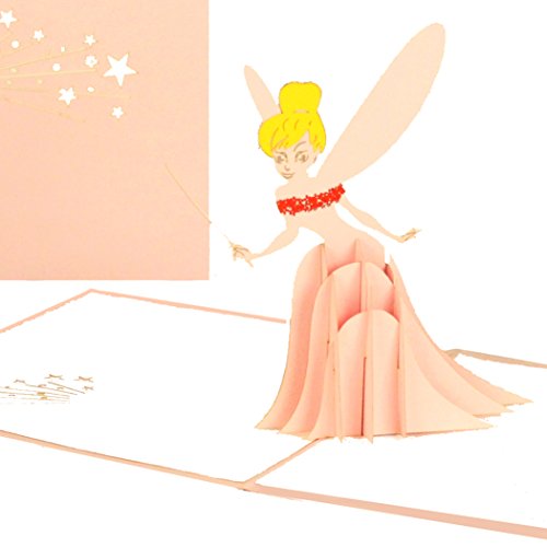 Biglietto pop-up "Piccola fata" - Biglietto di auguri 3D "Tinkerbell - Bastone delle fate e polvere di fata - Biglietto d'invito e biglietto di auguri per compleanno e compleanno per bambine