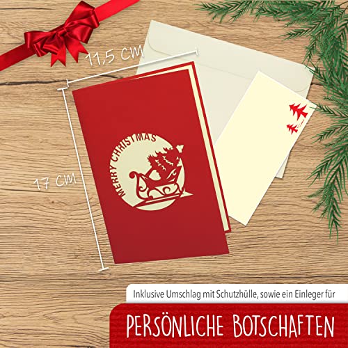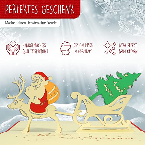 LIN - Pop Up 3D Biglietto di auguri di Natale, Babbo Natale su renna, (#411)