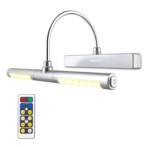 BIGLIGHT illuminare quadri,luci per quadri a batteria,Lampada per Quadri con Telecomando Dimmer di Luminosit¨¤,luci per quadri a batteria con forcellone oscillante a 180¡ã,d'argento