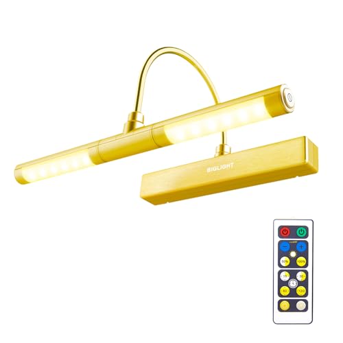 BIGLIGHT Lampada per Quadri,Luci Specchio con Telecomando,batteria Luci a Pittura Parete con 33 cm braccio oscillante a 180¡ã dimmer di luminosit¨¤ per Lampada da Specchio Bagno,oro