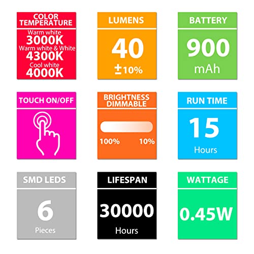 【Lampada da lettura per bambini con luminosità regolabile】 Ogni luminosità della luce può essere dimmerabile dal 100% al 10%. Basta premere e tenere premuto l'interruttore a sfioramento sulla testa della luce. Ideale per studiare, leggere, viaggiare, cucire, truccare, lavorare, ecc.