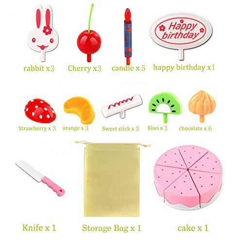 BigNoseDeer Bambini Regalo di Compleanno Giornata Gioca Toy Set Taglio Fai da Te Finta Play Festa di Compleanno Torta con Le candeline per Neonati Bambini Scherza Ragazze Classico 37pcs
