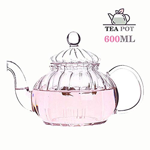 BigNoseDeer Teiera in Vetro con Resistente al Calore Removable Infuser - Vetro Trasparente Trasparente Elegante in Vetro Tazza di tè Infuser 600ML
