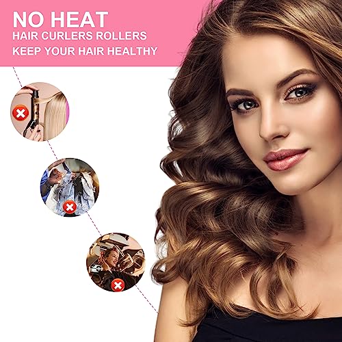 29 bigodini per capelli, bigodini per capelli autoaderenti, senza danni per capelli lunghi, medi e corti, bigodini per capelli a scatto, per capelli da donna, colore rosa