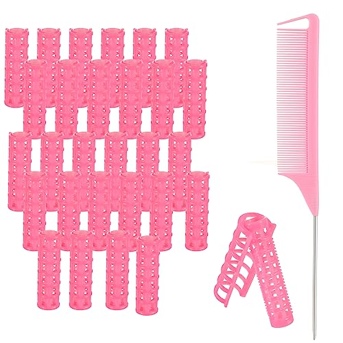 Set di bigodini da parrucchiere: viene fornito con 28 bigodini in plastica con 1 pettine a coda di cavallo facile da trasportare e riporre, quantità sufficiente in grado di soddisfare le tue esigenze quotidiane di arricciatura dei capelli, puoi anche condividerli con i tuoi amici o familiari.