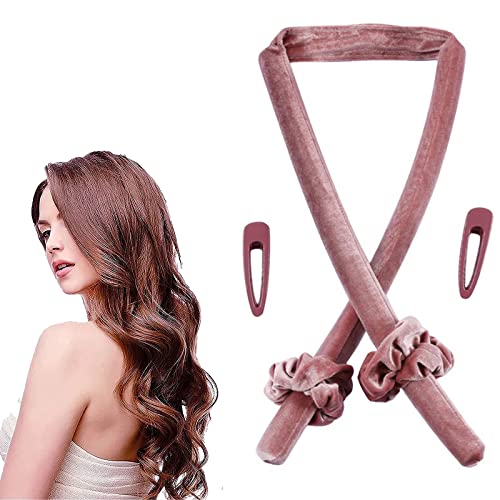 Bigodini per Capelli Senza Calore, Heatless Curlers Headband, Bigodino Lungo per Boccoli, Nastro Riccio Senza Calore, Silk Hair Curler Heatless Curling Ribbon Hair Con Clip a Becco D'Anatra (Rosa)