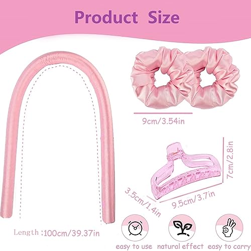 Bigodino Lungo per Boccoli, Heatless Hair Curler,Capelli Arricciacapelli Bigodini,Capelli Senza Calore,Set Di Bigodino Sleepy Waves Capelli Seta Bigodini Pigro Set Per Dormire Durante La Notte(Rosa)