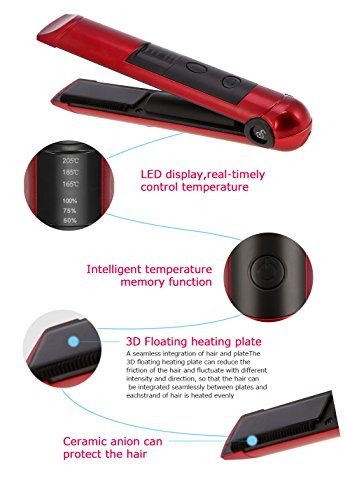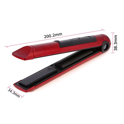Bigodino e piastra per capelli Mini dispositivo per lo styling dei capelli senza fili professionale ricaricabile per tutti i tipi di capelli(Rosso)