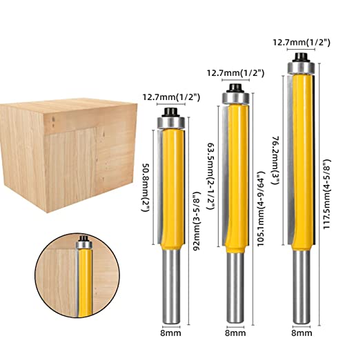 BIGP Set di 3 Fresa per Rifilare con Cuscinetto, Frese con gambo da 8 mm, Fresa a Taglienti Diritti, lama extra lunga e dritta, Fresa per Legno