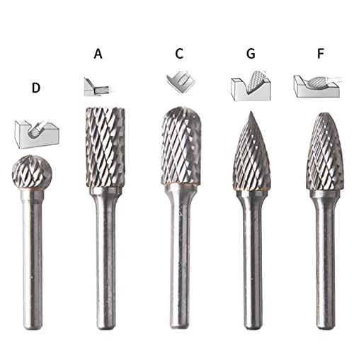 Informazioni sulle dimensioni: 5 pezzi in metallo duro a doppio taglio con diametro gambo: 6 mm, diametro di taglio: 10 mm. Compatibile con la maggior parte delle smerigliatrici o utensili rotanti. Si prega di confermare le dimensioni prima dell'acquisto.