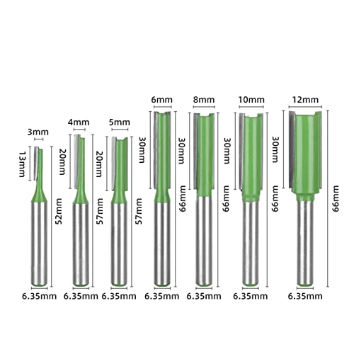 Il pacchetto include: 7 punte per fresa diritta da 6 mm con gambo singolo/doppio scanalatura.