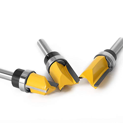BIGP Set di 3 Punte per Fresa con gambo da 8 mm, Fresa a Taglienti Diritti per Rifilare con Cuscinetto, Diametro di taglio da 19.05 mm, per Fresatura del Legno