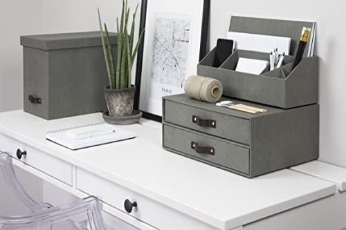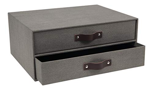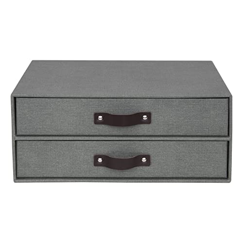 Bigso Box of Sweden Mini cassettiera da scrivania per documenti e materiale da ufficio - Organizer scrivania con 2 cassetti - Scatola con cassetti in fibra di legno e carta - grigio